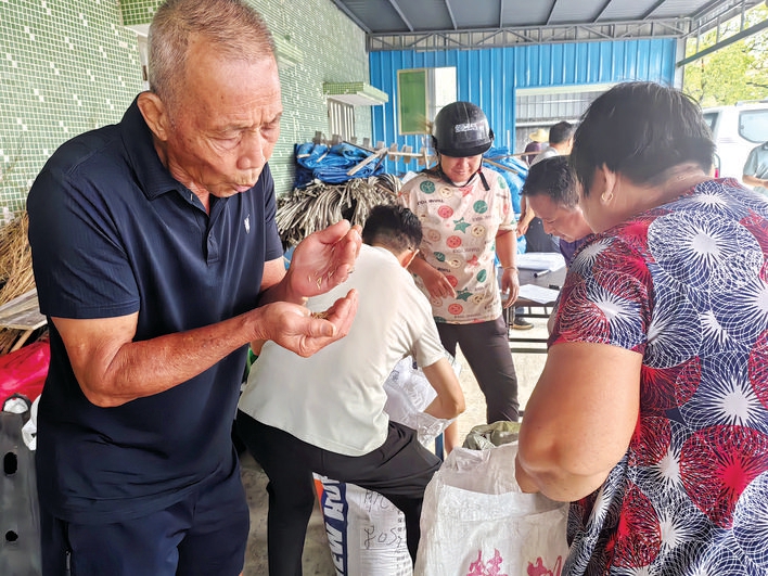 来自永湖镇的种植户林叔小心翼翼地捧着水稻种子端详,脸上露出期待的笑容。“晚造水稻计划种700多亩,领的是‘华航香银针’品种,听说品质产量都挺不错的。”林叔兴奋地说,他打算从菜农手里接过菜地来种植水稻,政府部门除了免费提供种子,还给予技术支持,这让他信心更足了。