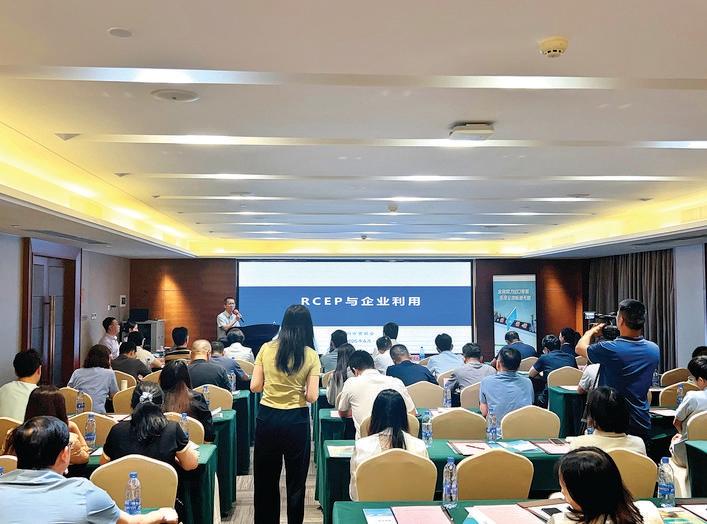 惠州市贸促会在会上宣讲RECP自贸协定相关政策。 惠州日报记者黄尉宏 摄