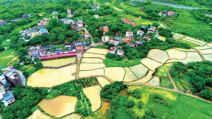 沙田镇推动作物轮作以提高各种作物的产量。这是航拍东澳村稻田。(资料图片)