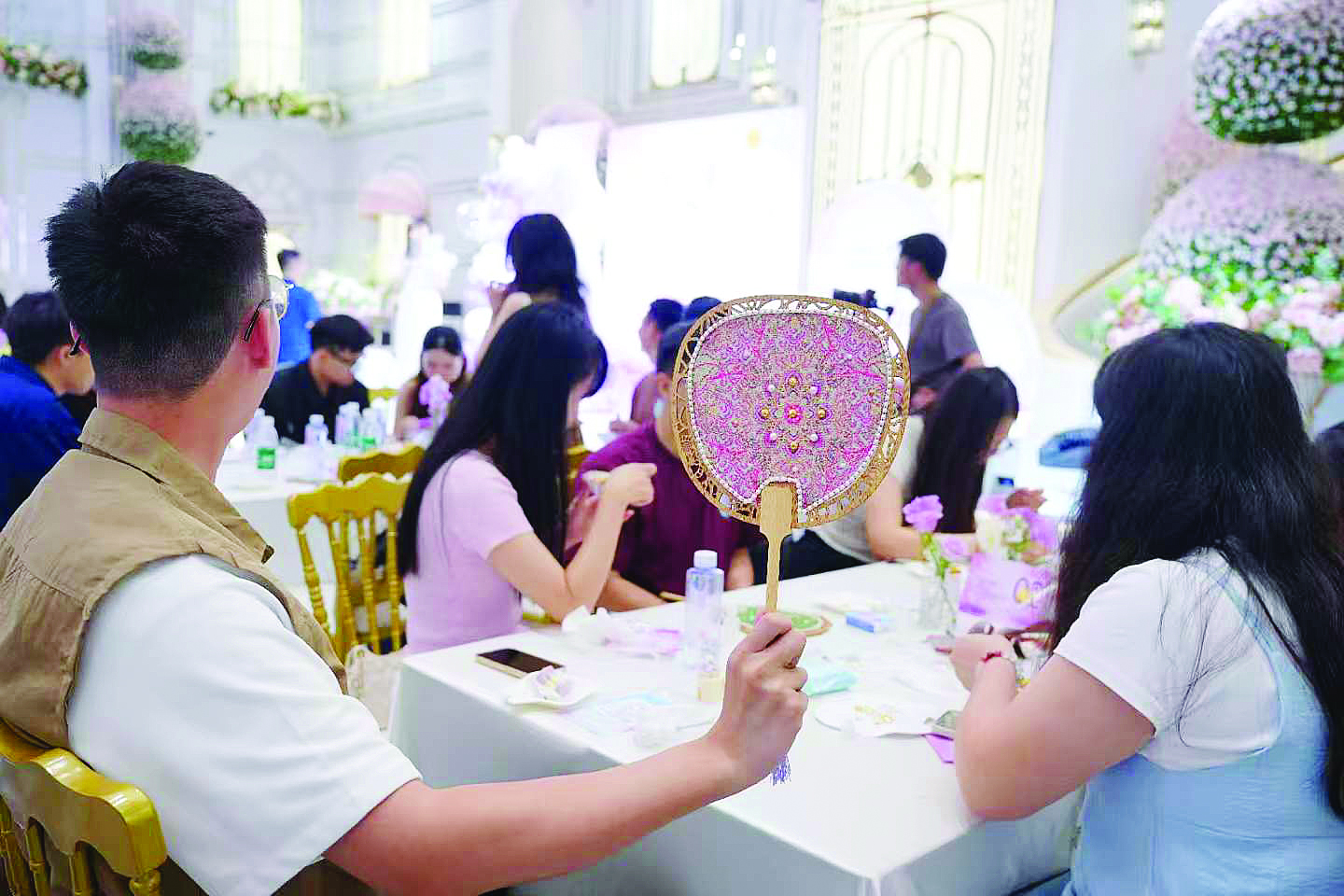 在温馨雅致的“穿针乞巧”环节中,嘉宾们八人一组围坐案前,凝神屏息,指尖轻捻红丝,缓缓引线穿针,方寸之间,让青年男女沉浸式感受民俗独特魅力,在互动中溯源千年浪漫,深化对七夕渊源与习俗的理解,既是对传统技艺的致敬,亦是对匠心与美好的现代延续。一缕红线、一枚细针,串起的不只是古今智慧,更是对幸福生活的巧思与期盼。