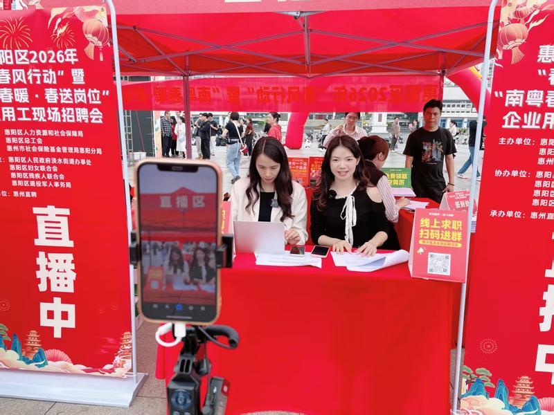 就业是最大的民生工程、民心工程,更是稳经济、保增长、促发展的重要支撑。2026年是“十五五”规划的开局之年,惠阳区将实现高质量充分就业作为重点任务,政府工作报告明确提出城镇新增就业1.9万人以上、失业人员再就业4000人以上、就业困难人员就业400人以上的目标,并深入实施稳岗扩容提质行动,不断完善人力资源供需匹配机制。此次“春风行动”系列活动,正是惠阳区落实就业优先政策、践行民生服务理念的生动实践。